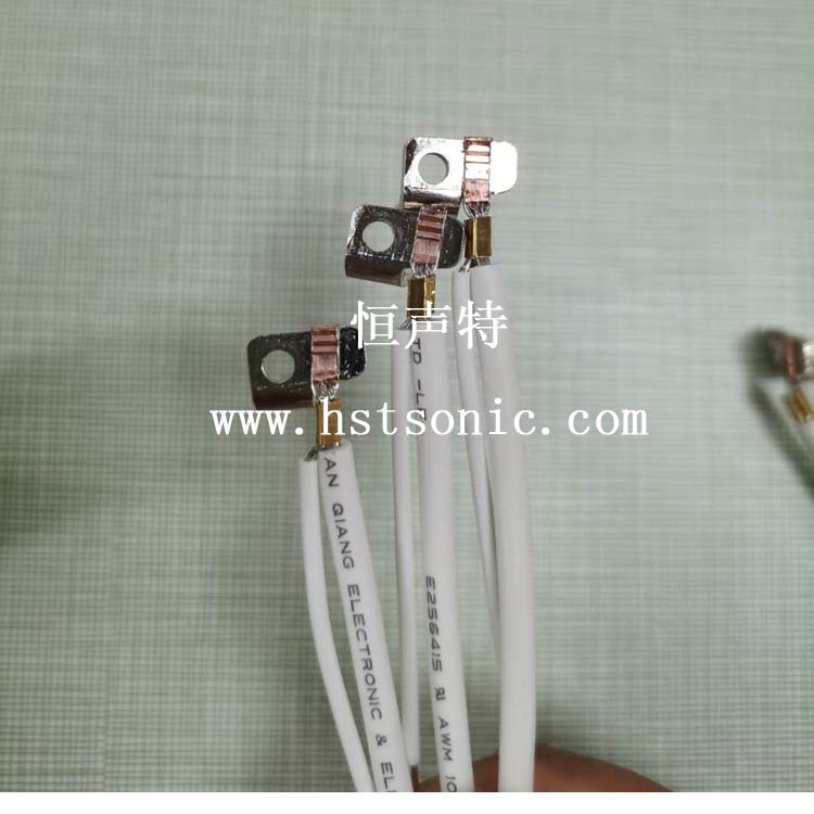 4平方鍍錫線與銅端子超聲波金屬點(diǎn)焊機(jī)焊接樣品如下: