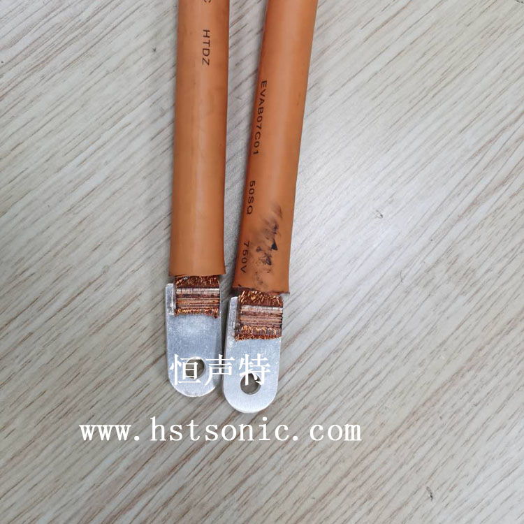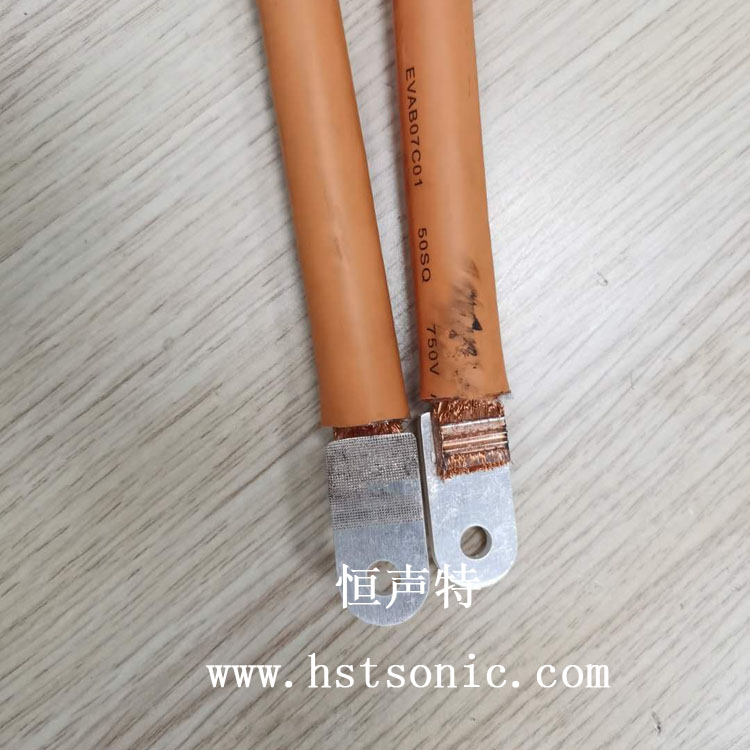 50平方銅線與端子焊接超聲波點焊機焊接效果牢固,表面痕跡齒形均勻,無毛刺。