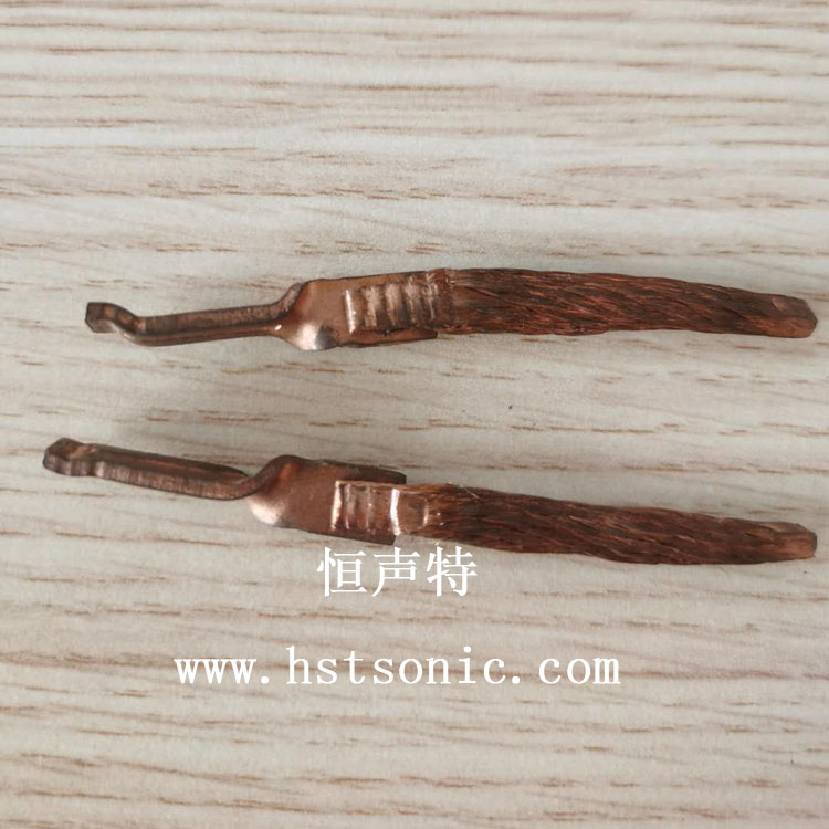 繼電器編織線與銅端子超聲波電焊機(jī)焊接樣品如下: