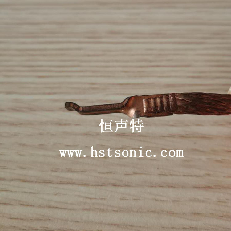 繼電器編織線與銅端子焊接超聲波點(diǎn)焊機(jī)焊接效果牢固,表面痕跡齒形均勻,無毛刺。
