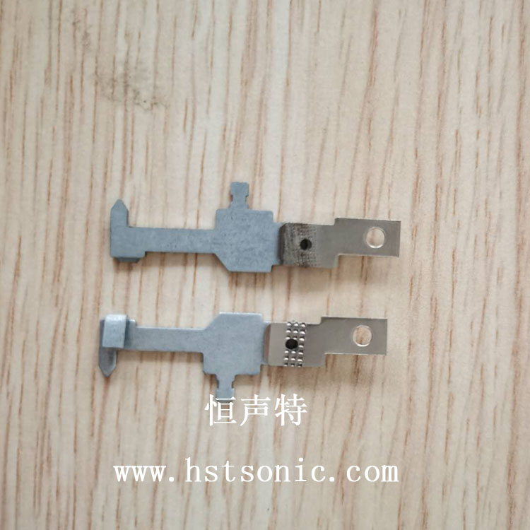 鐵片與鐵片搭接超聲波點(diǎn)焊機(jī)焊接樣品如下: