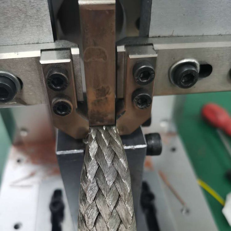 50平方鋁線壓方成型超聲波壓焊表面呈規(guī)則痕跡(可定制),背面呈網(wǎng)紋狀(非平面),壓接形狀見下圖。