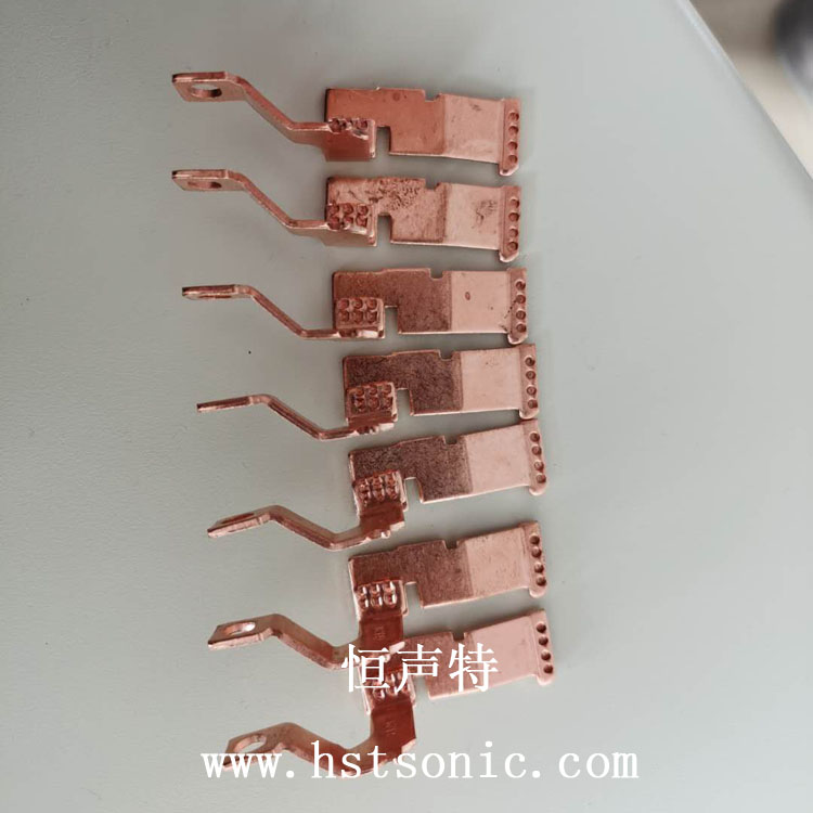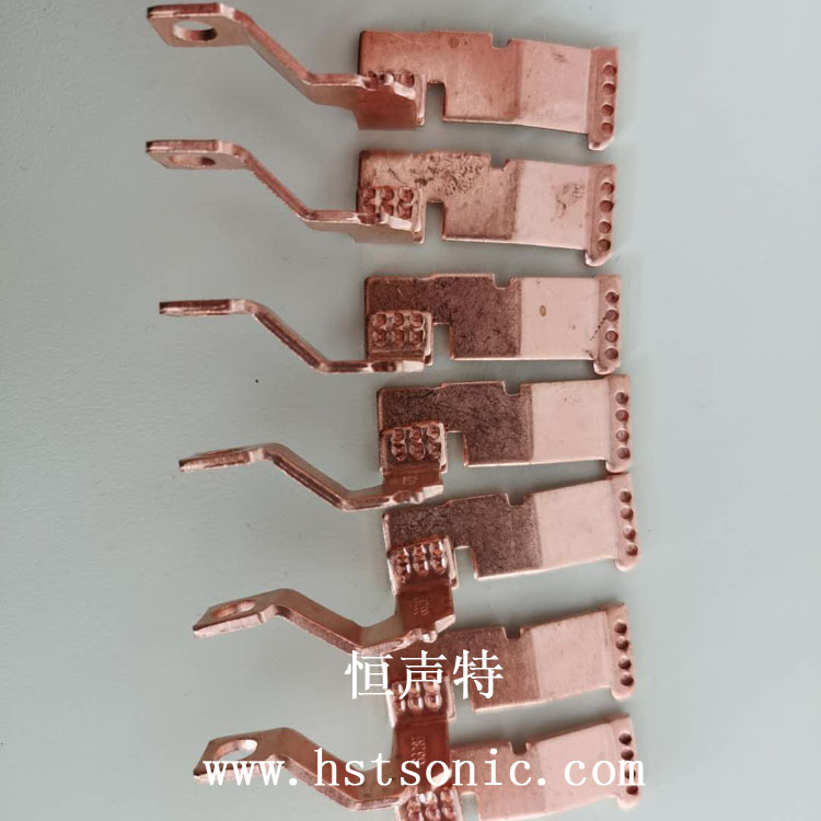 厚度1.5mm銅端子與銅端子焊接超聲波壓焊機(jī)用于2根鋁片的搭接壓合,焊點(diǎn)牢固不脫落。