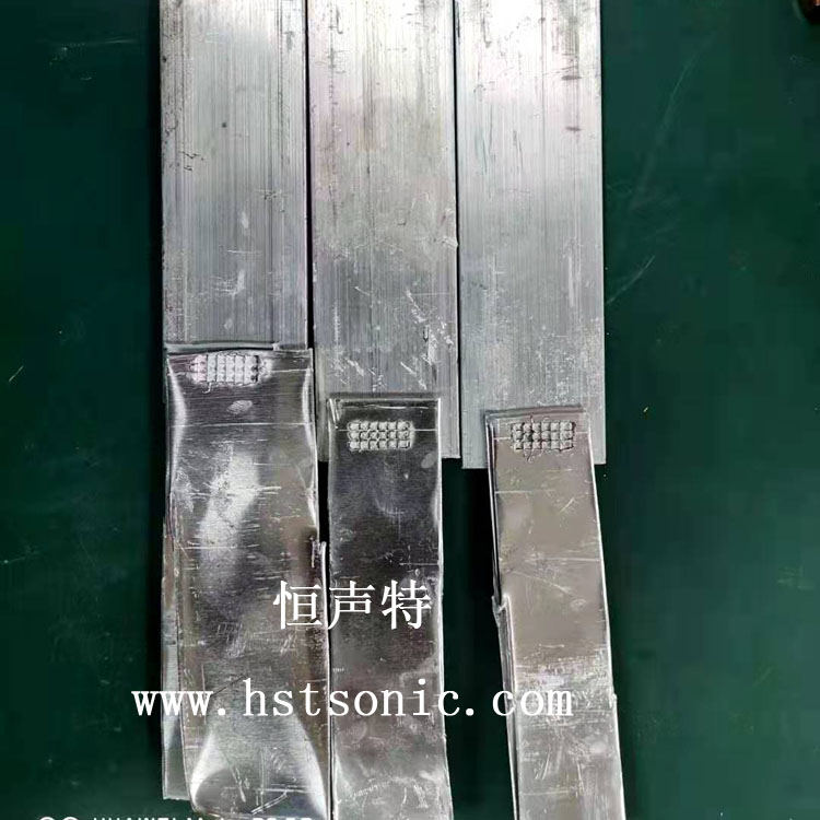 兩層鋁片1mm與5mm,6mm,8mm鋁排焊接超聲波點(diǎn)焊機(jī)用于2根銅片的搭接壓合,焊點(diǎn)牢固不脫落。