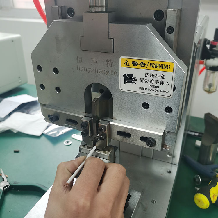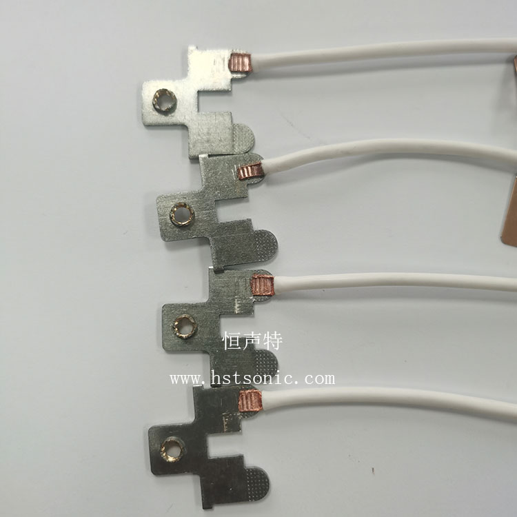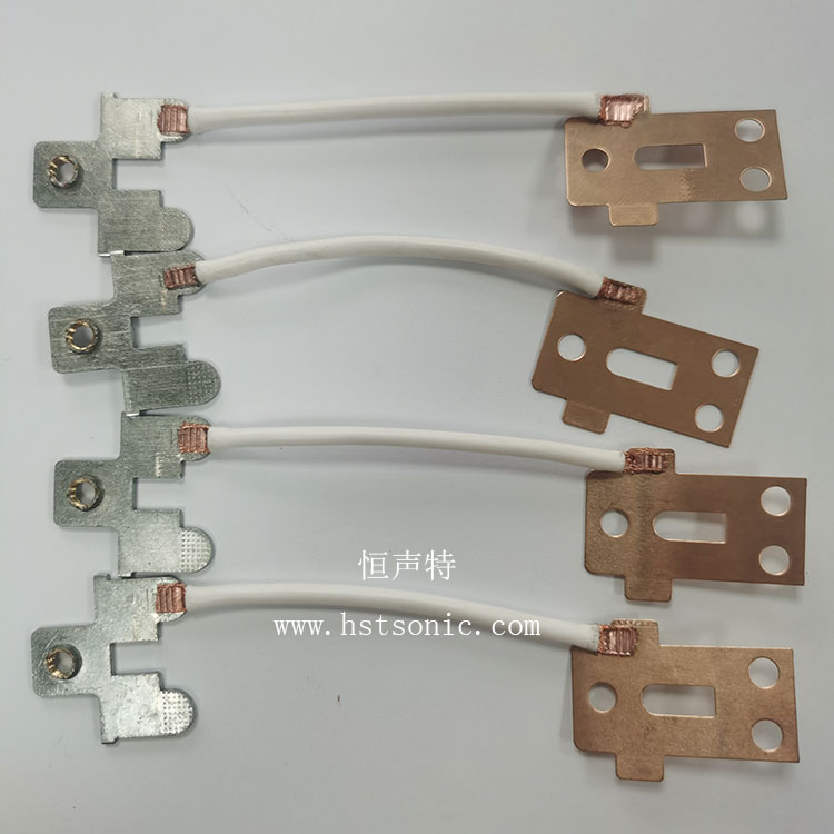 銅線與銅鋁端子焊接超聲波點焊機用于端子與銅線的壓合搭接焊接,電阻幾乎為零,焊點牢固。