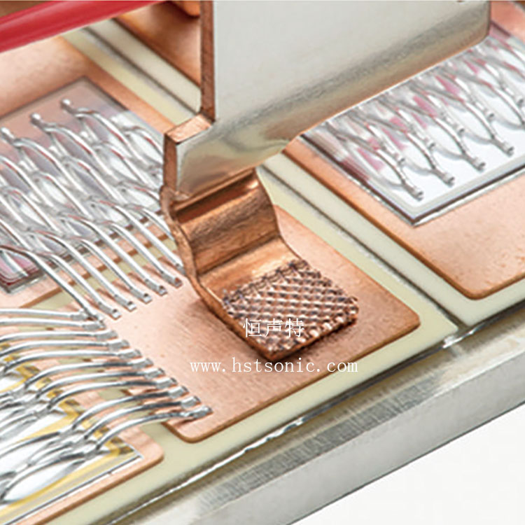 電路板銅片焊接超聲波壓焊機操作簡單,將金屬片放在下工裝處,啟動按鈕,設(shè)備在設(shè)定好的參數(shù)下完成壓接。