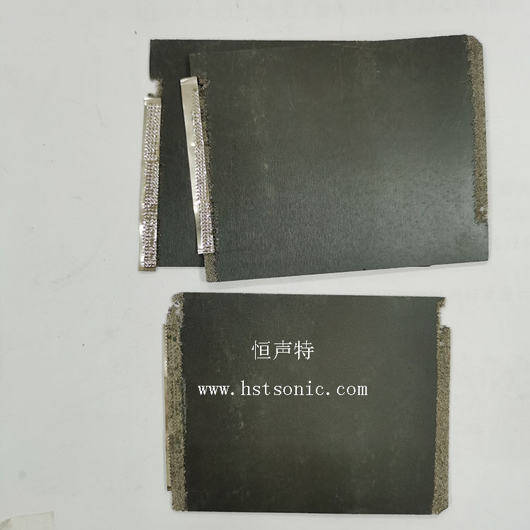 極耳鎳與泡沫鎳超聲波點焊機焊接后的耳和片表面平整,無褶皺,背面無凸起的毛刺,焊點飽滿清晰,牢固可靠,焊點位置不破裂;