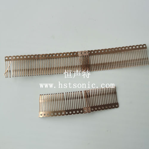 超聲波金屬焊接機(jī)焊接壓焊表面呈規(guī)則痕跡(可定制),背面呈網(wǎng)紋狀(非平面),壓接形狀見下圖。