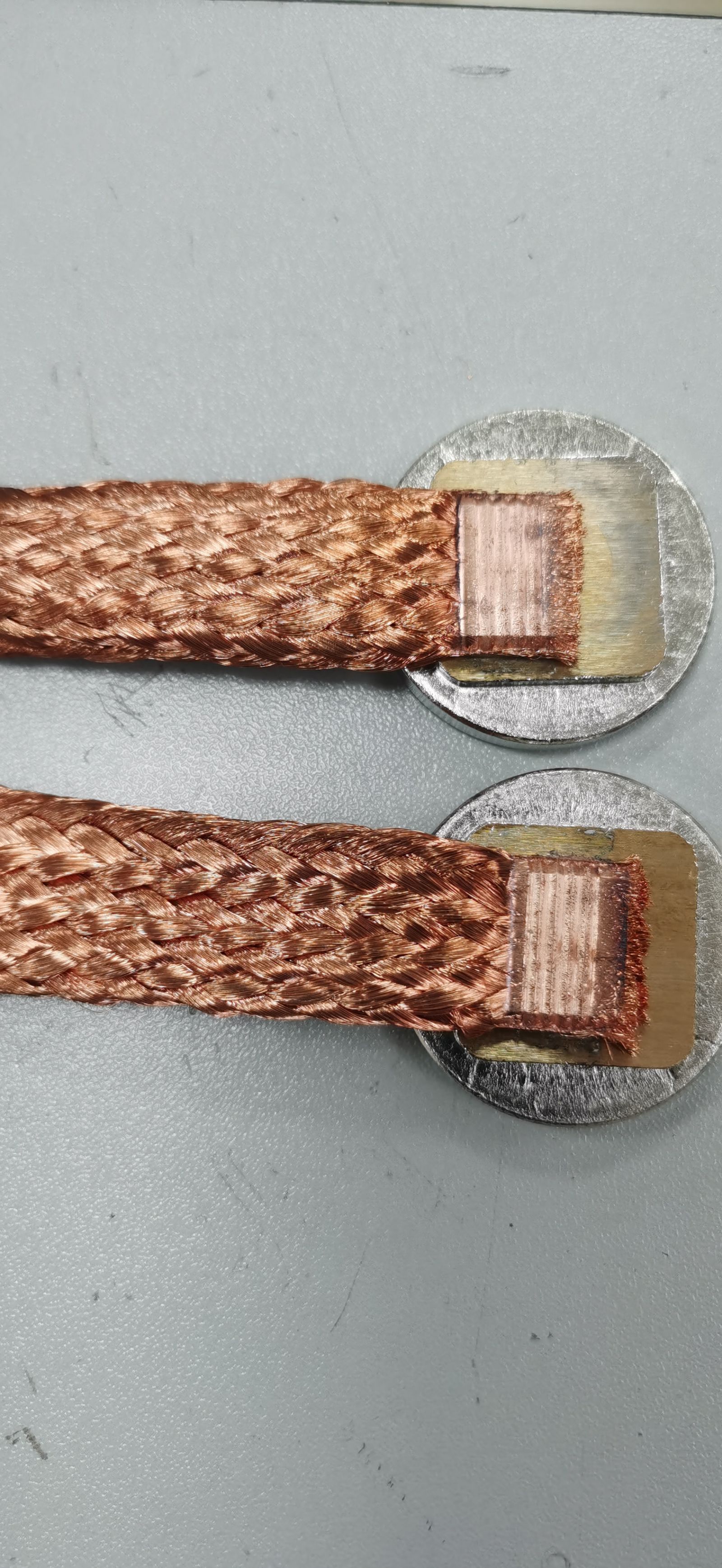 銅編織線與銅片超聲波金屬點(diǎn)焊機(jī)焊接樣品如下: